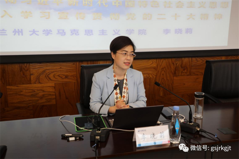 蘭州大學(xué)馬克思主義學(xué)院副教授李曉莉同志用世事紛繁多元應(yīng)、思想之旗領(lǐng)航向、人間正道開新篇、初心砥礪天地間、彩云長在有新天五個(gè)生動(dòng)、形象的標(biāo)題,詳細(xì)闡述解讀了對(duì)黨的二十大報(bào)告“五個(gè)牢牢把握”的重要要求。
