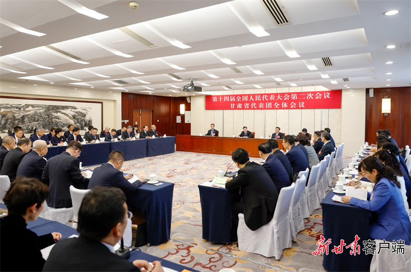 3月3日,十四屆全國人大二次會(huì)議甘肅代表團(tuán)在駐地召開會(huì)議。全國人大代表、省委書記、省人大常委會(huì)主任胡昌升主持會(huì)議。(記者孟捷)