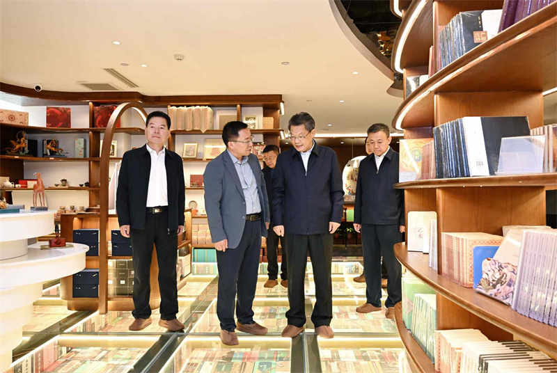 任振鶴先后來到敦煌印局、敦煌無界、敦煌書局和敦煌集·非遺文化街區(qū),詳細(xì)了解文化產(chǎn)業(yè)發(fā)展和非遺文化街區(qū)建設(shè)等情況。他指出,敦煌文化延續(xù)近兩千年,是世界現(xiàn)存規(guī)模最大、延續(xù)時間最長、內(nèi)容最豐富、保存最完整的藝術(shù)寶庫。要不斷擦亮敦煌文化名片,圍繞建設(shè)世界文化遺產(chǎn)保護(hù)的典范和敦煌學(xué)研究高地,把握傳承和創(chuàng)新的關(guān)系,找準(zhǔn)契合處、聯(lián)結(jié)點,加快業(yè)態(tài)融合、產(chǎn)品融合、市場融合、服務(wù)融合,在更高起點、更高層次、更高目標(biāo)上讓敦煌文化“活起來”“潮起來”,為現(xiàn)代化建設(shè)提供有力文化支撐。