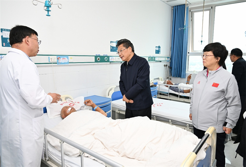 任振鶴還來到隴西縣第二人民醫(yī)院,看望這里收治的受傷群眾,了解救治情況。他強調(diào),要精心開展后續(xù)治療工作,及時做好情緒疏導(dǎo)和心理撫慰,爭取讓傷員早日康復(fù)回家。