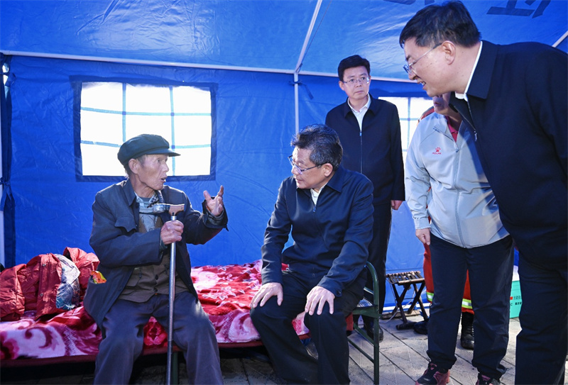 在文峰鎮(zhèn)樺林村,任振鶴深入震中,實地察看房屋、道路等受損情況,來到安置點看望受災(zāi)群眾,隨后在臨時指揮部主持召開會議,與省軍區(qū)、省直相關(guān)部門及定西市、隴西縣、文峰鎮(zhèn)等負責(zé)同志進行會商研判,安排部署下一步工作。他指出,地震發(fā)生后,各級各相關(guān)部門聞“震”而動、行動迅速,第一時間開展抗震救援、排險除險工作,奠定了重要基礎(chǔ)。要堅持“省級指導(dǎo)、市縣統(tǒng)籌、各方支持、群眾參與”,強化統(tǒng)一調(diào)度,落實責(zé)任、整合資源,以科學(xué)有效的指揮、周密完備的部署,繼續(xù)做好抗震救災(zāi)各項工作。要全面排查風(fēng)險隱患,加強余震監(jiān)測預(yù)警,聚焦農(nóng)房、學(xué)校、養(yǎng)老院、衛(wèi)生院、水庫、道路、工礦、橋涵、地質(zhì)災(zāi)害點等可能受地震影響的重點部位,不漏一戶、不落一處,早發(fā)現(xiàn)、早處置,有安全風(fēng)險的及時轉(zhuǎn)移,嚴防發(fā)生次生災(zāi)害。要妥善安置受災(zāi)群眾,按照“五有”要求保障好群眾基本生活,讓受災(zāi)群眾感到踏實、安穩(wěn)、溫暖。要搶通保暢基礎(chǔ)設(shè)施,緊盯水、電、路、訊,全力做好排查搶修等工作,推動盡快恢復(fù)正常生產(chǎn)生活秩序。要迅速開展抗災(zāi)自救,用好各方救援力量,引導(dǎo)動員群眾做好農(nóng)房修復(fù)、廢墟清理等工作。要切實增強抗震意識,進一步完善應(yīng)急預(yù)案,加強防震減災(zāi)安全知識宣傳,不斷提升群眾防災(zāi)減災(zāi)意識,減少災(zāi)害帶來的人身安全、經(jīng)濟財產(chǎn)損失。