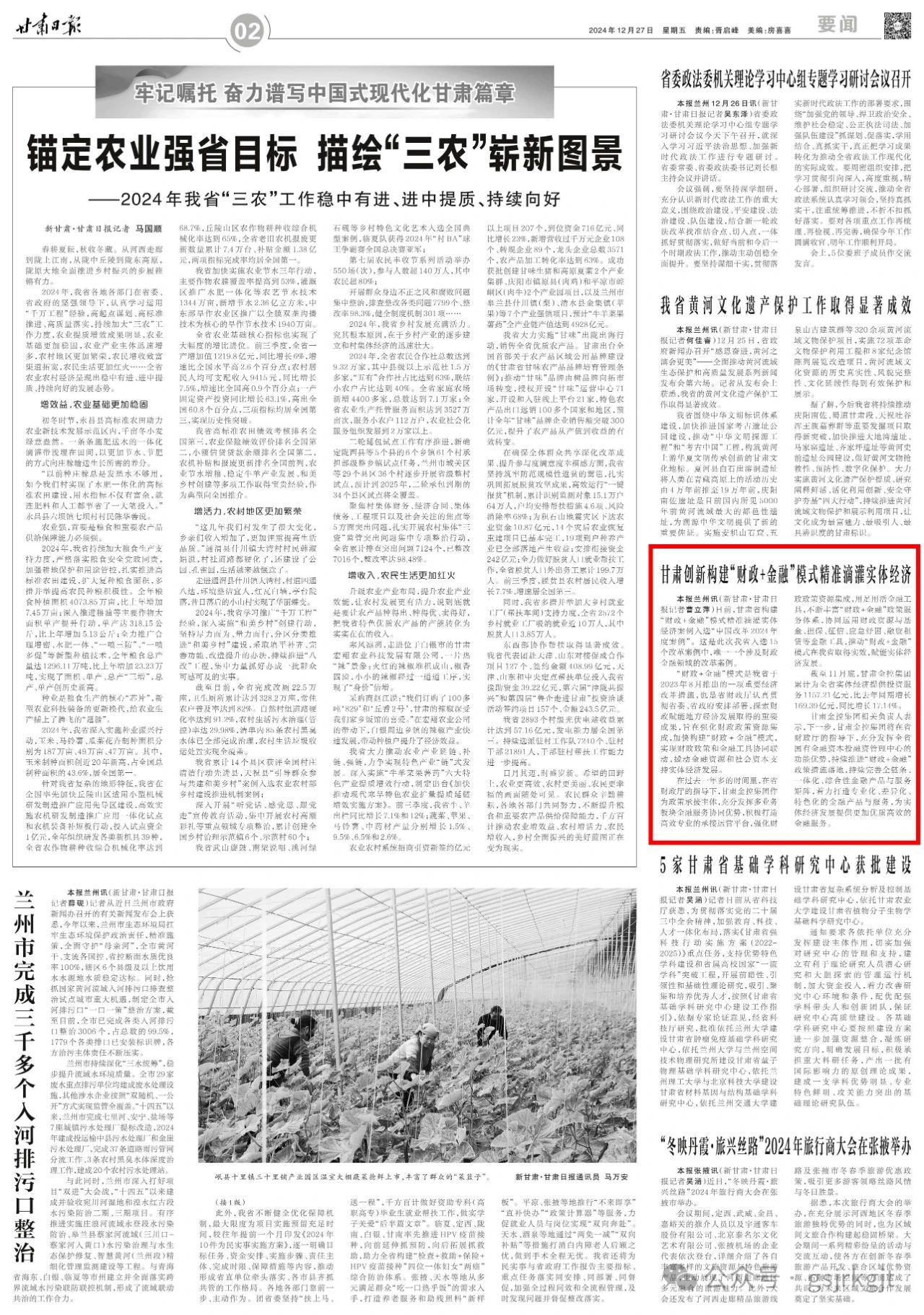新甘肅客戶端蘭州訊(新甘肅·甘肅日報(bào)記者曹立萍)日前,甘肅省構(gòu)建“財(cái)政+金融”模式精準(zhǔn)滴灌實(shí)體經(jīng)濟(jì)案例入選“中國改革2024年度案例”。這是此次我省入選15個改革案例中,唯一一個涉及財(cái)政金融領(lǐng)域的改革案例。