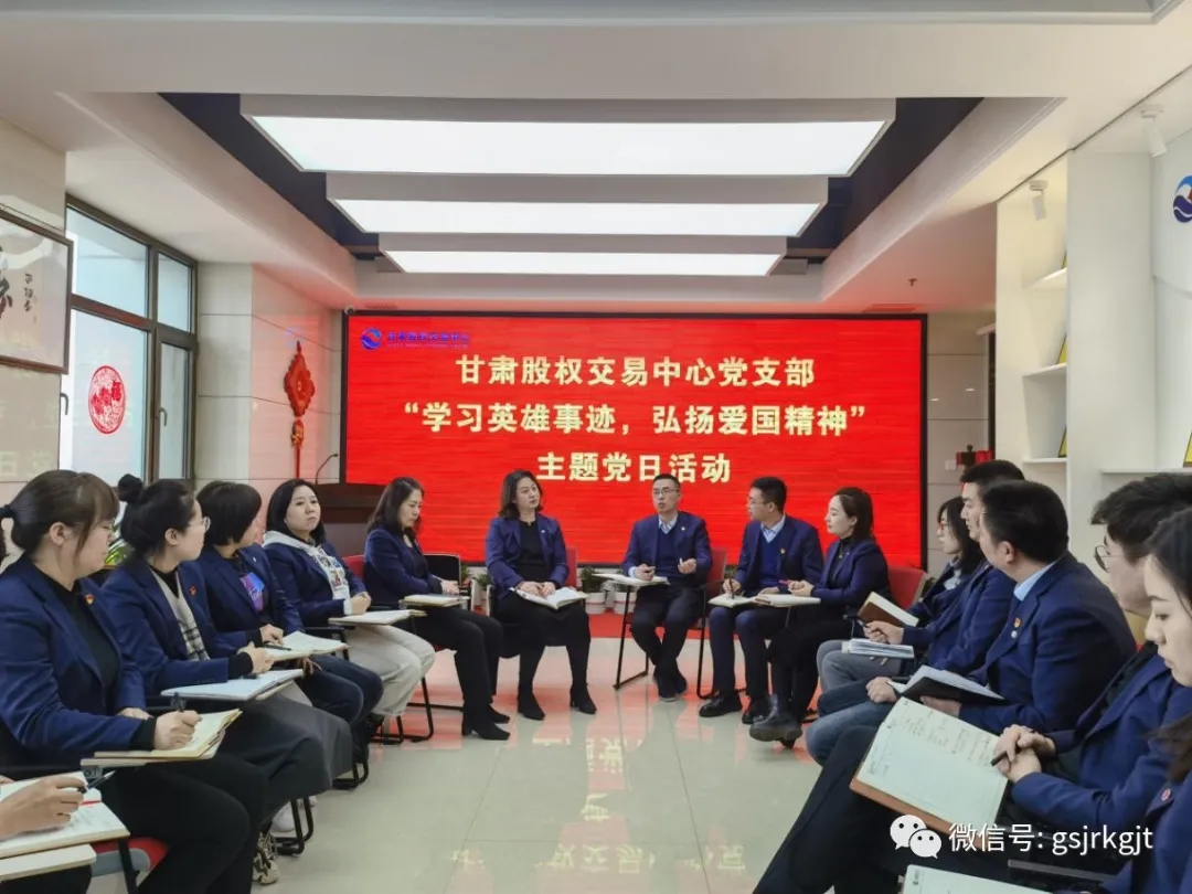 近日,甘肅股權交易中心黨支部開展“學習英雄事跡,弘揚愛國精神”主題黨日活動。學習戍邊衛(wèi)國英雄先進事跡,弘揚偉大愛國主義和革命英雄主義精神。
