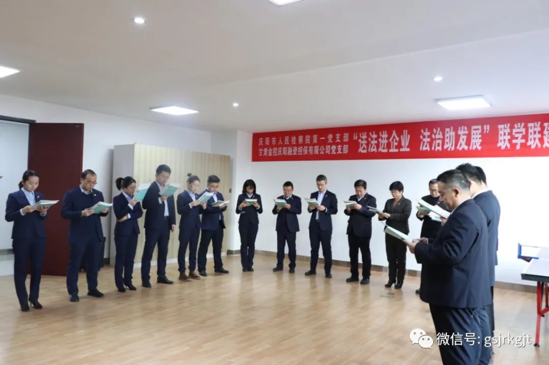 近日,慶陽市人民檢察院聯合甘肅金控慶陽擔保公司開展聯學聯建活動,創(chuàng)新黨建引領新形式,豐富黨建工作新內容,增強企業(yè)依法經營新理念,全面推動法治管理建設縱深發(fā)展。