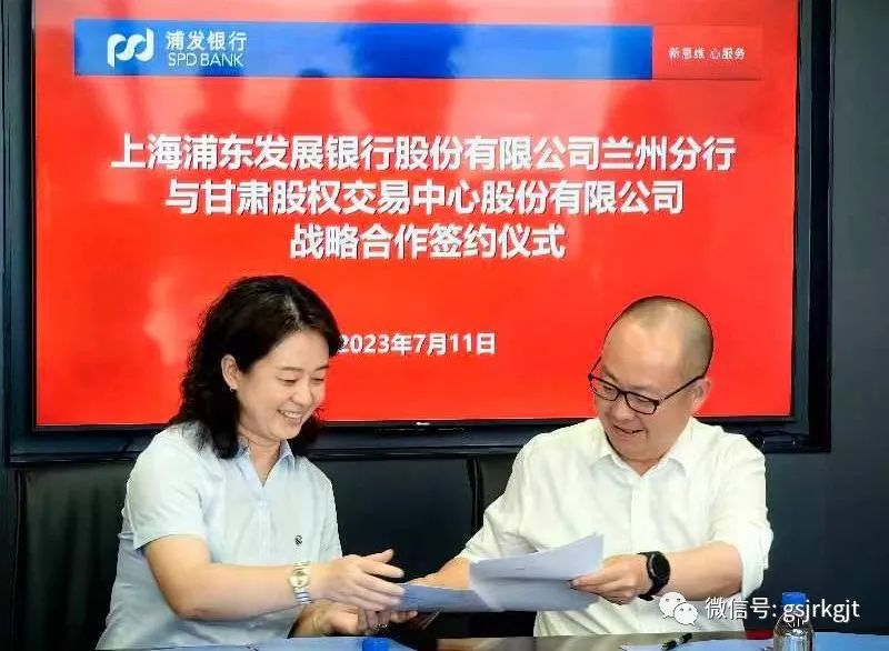 近日,上海浦東發(fā)展銀行股份有限公司蘭州分行(以下簡稱“浦發(fā)銀行蘭州分行”)與甘肅股權交易中心舉行戰(zhàn)略合作簽約儀式,浦發(fā)銀行蘭州分行副行長王建及相關部門負責人,甘肅股交中心董事長兼總經理樊亞娟及班子成員出席簽約儀式。