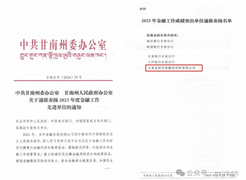 近日,甘南州委召開金融工作會議,對2023年度金融工作成績突出的人民銀行甘南州分行、國家金融監(jiān)督管理總局甘南監(jiān)管分局、建設(shè)銀行甘南分行、郵儲銀行甘南分行、甘肅銀行甘南分行、蘭州銀行甘南分行、甘肅金控甘南融資擔(dān)保有限公司等單位予以通報(bào)表揚(yáng)。授予金控甘南擔(dān)保公司“普惠金融發(fā)展貢獻(xiàn)獎”。